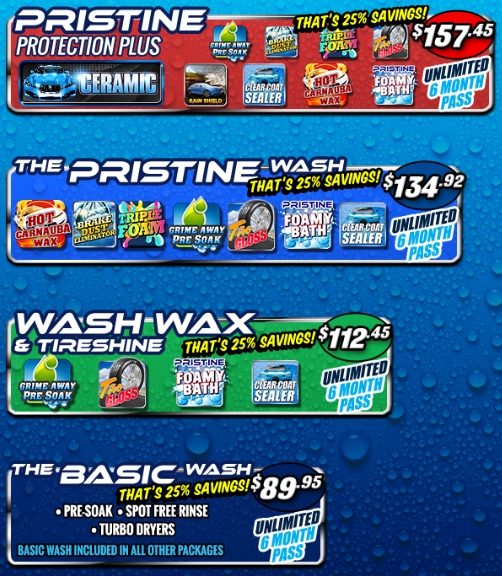 Come to the car wash and ask us about our 6 month membership packages starting as low as $89.95 for 6 months of unlimited clean!